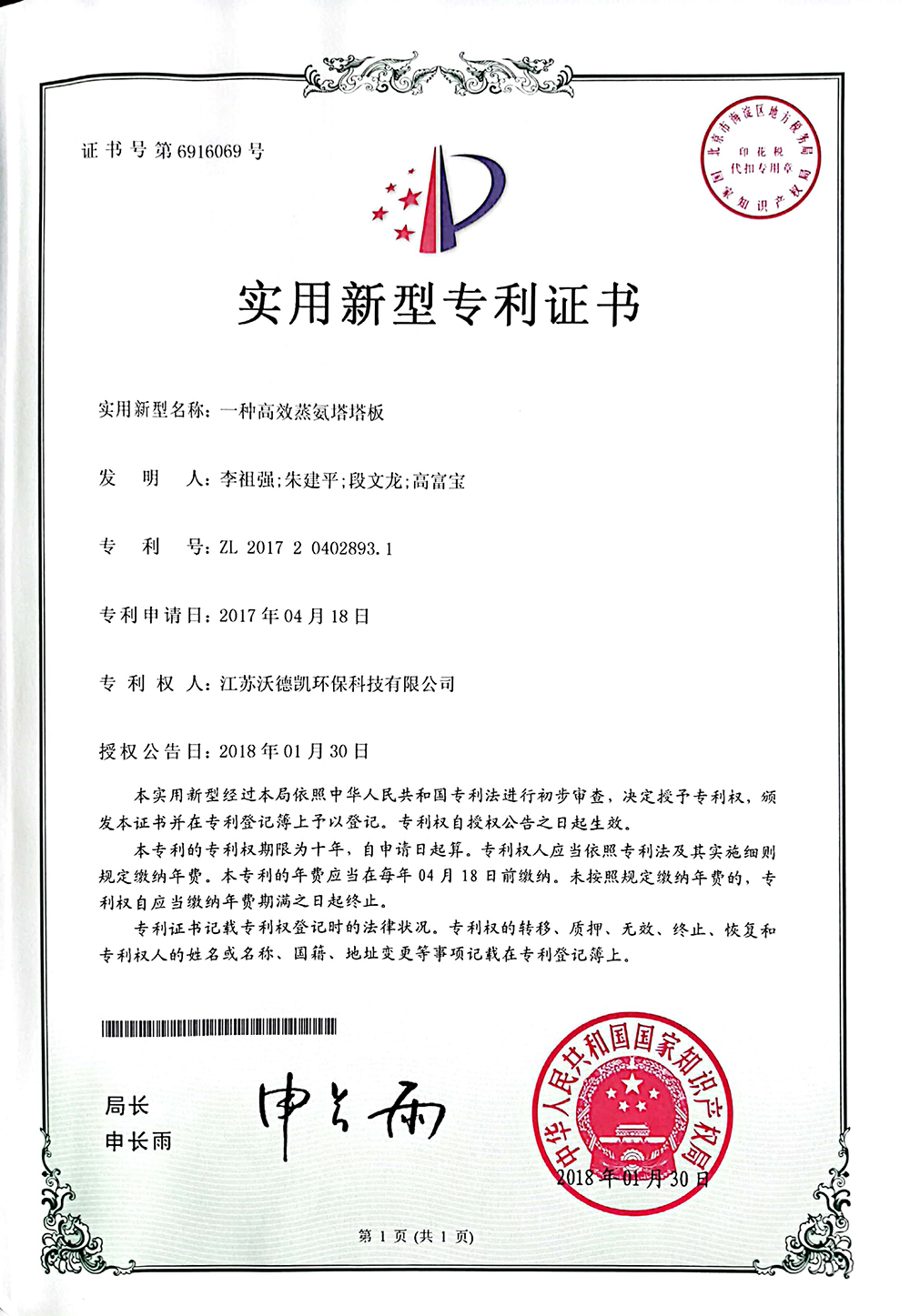 当前位置:首页>>关于我们>>荣誉资质>>高效蒸氨塔塔板