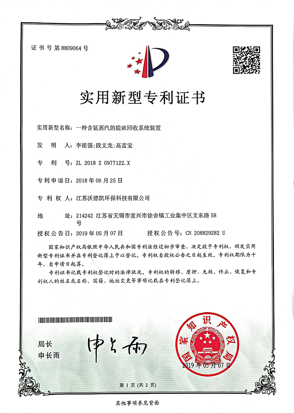 当前位置:首页>>关于我们>>荣誉资质>>含氨蒸汽提浓回收系统装置
