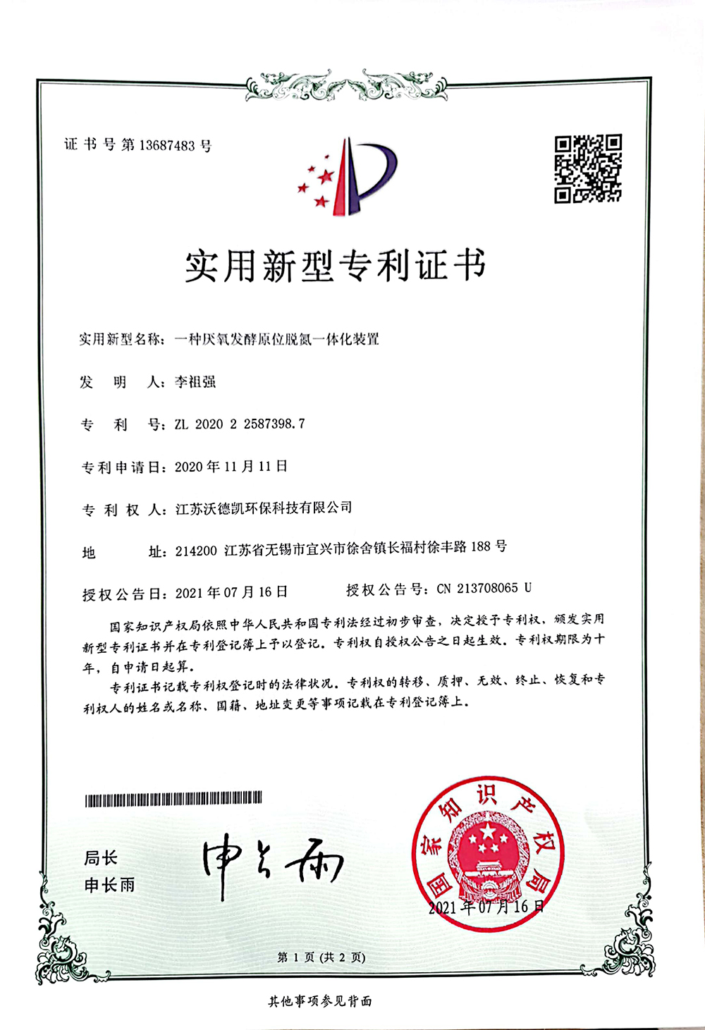 当前位置:首页>>关于我们>>荣誉资质>>厌氧发酵原位脱氨一体化装置