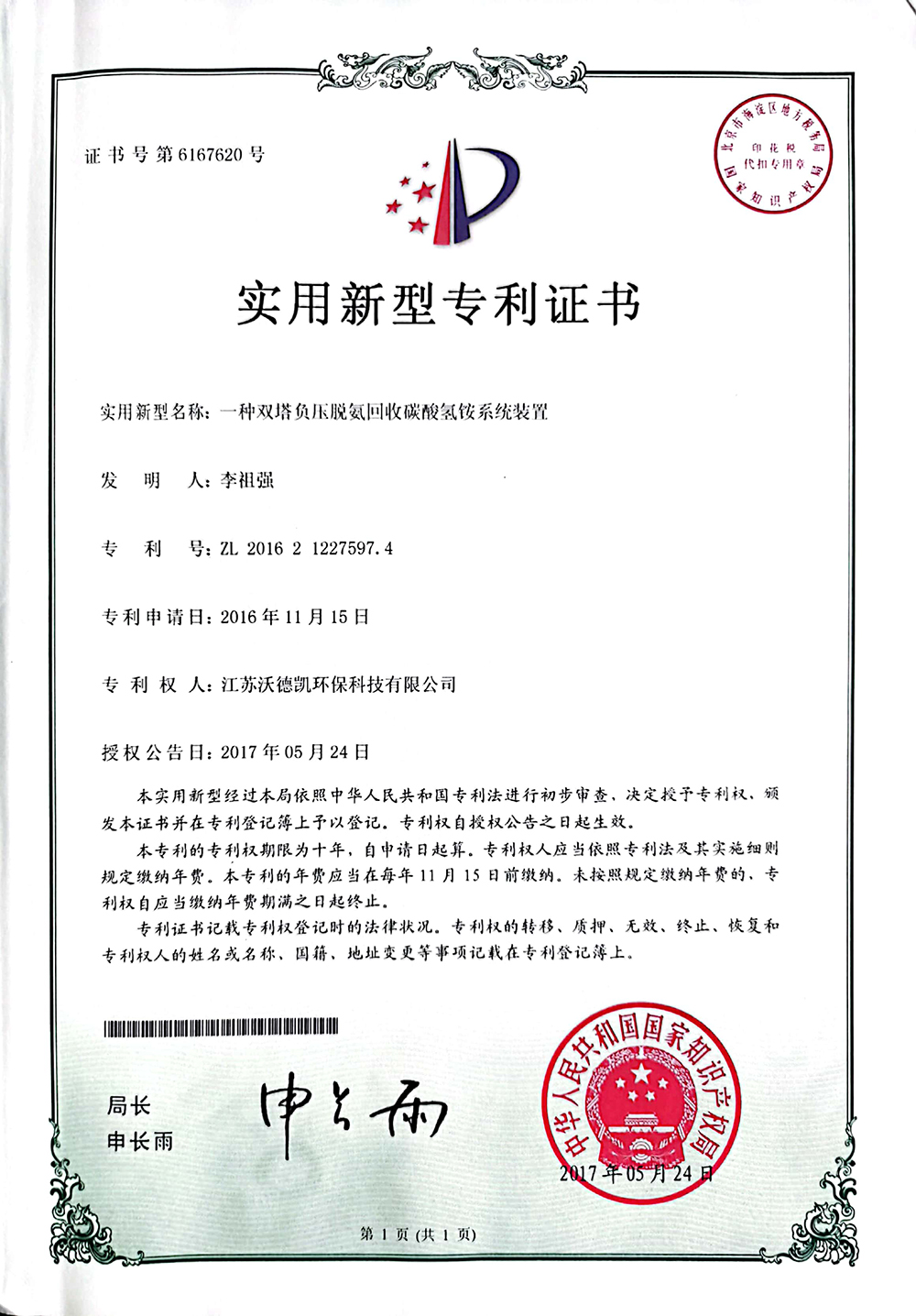 --双塔负压脱氨回收碳酸氢铵系统装置